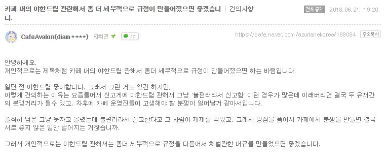 | Áß±¹ ¸ð¹ÙÀϰÔÀÓ º®¶÷Ç×·Î(¾ÆÁÖ¸£·¹ÀÎ) Ä«Æä¼ ¾ßÇѵ帳¿¡ ´ëÇÑ ¼¼ºäÀû ±ÔÁ¤À» ¸¸µé¾î´Þ¶õ ¸ð½ÀÀÌ´Ù. ½ÉÁö¾î ¾ßÇѵ帳¿¡ ´ëÇØ ¼¼ºÎÀû ±ÔÁ¤À» ¸¸µé¾î ´Þ¶ó´Â Á¤½Å ³ª°£ ¸ð½ÀÀ» ³×À̹öÄ«Æä¿¡¼ ¿äû ÁßÀÌ´Ù. ±×³É ¹º°¡ ¾Æ¹«¸® ºÁµµ Á¤½Å ³ª°£ »õ³¢·Î ¹Û¿¡ ¾Èº¸¿©.