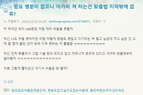 ÁøÂ¥ ¾È Àоú´Ù. ¸ÂÃã¹ý ¸¸ ÁöÀûÇÑ °Å ¾øÀ½. ÁöÀûÇѰŠÁ¸³ª ¸¹À½. ½Î¿òÀº ¸íºÐÀ̶ó´À´Ï, űװ¡ ¹¹¿¡ ¾²´ÂÁö ¸ð¸£°í Àú·±µ¥´Ù°¡ ¶Ë °°Àº ¼Ò¸® ½Î°¥±â¸é¼. |