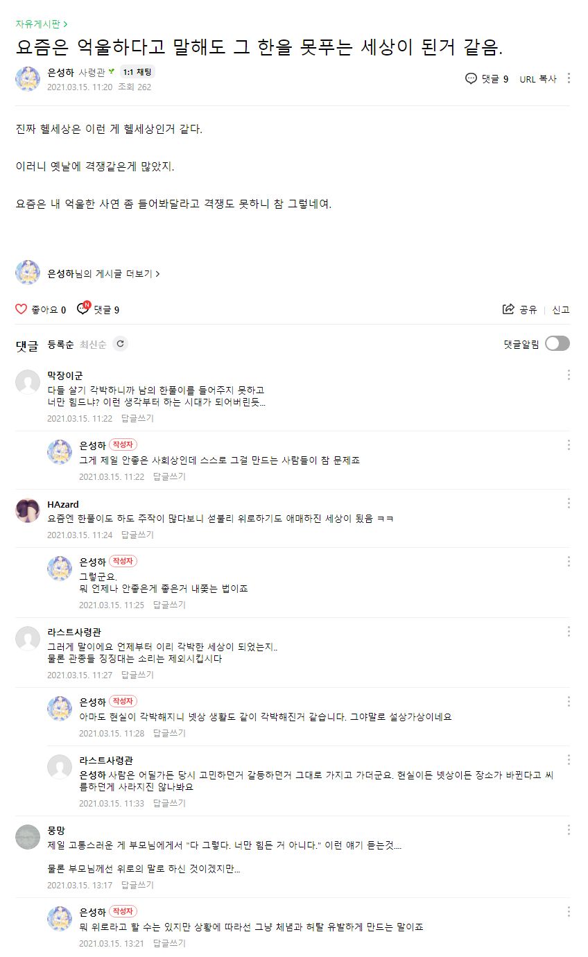 | ¾ï¿ïÇÏ´Ù°í ¸»Çصµ ±× ÇÑÀ» ¸øÇª´Â ¼¼»óÀÌ µÈ°Å °°À½ (³×À̹ö ¶ó½ºÆ®¿À¸®Áø Ä«Æä) |