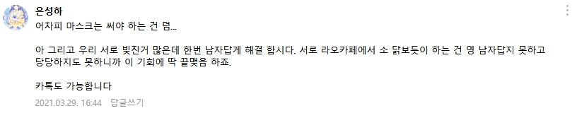 | ÇÑÁ¾¿ìÀÇ 3¿ù 29ÀÏ Ä«Æä Ȱµ¿ ÀÏÁö : ÄÚ¸àÆ® Æí (¶ó½ºÆ®¿À¸®Áø Ä«Æä) |