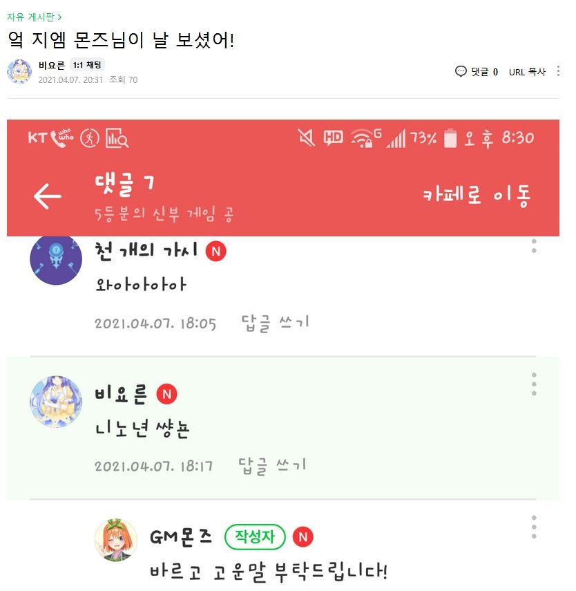 °ü¸®ÀÚ°¡ ÄÚ¸àÆ® ´Ü ¿øÀÎ : ¯¼ºÇϰ¡ ÄÚ¸àÆ®¿¡ ¿åÀ» ½á¼ ¹ÌÄ¡¼Ì³ª... |