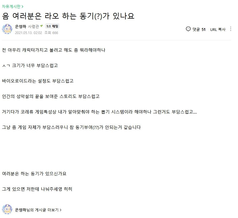 | ¿©·¯ºÐÀº ¶ó¿À ÇÏ´Â µ¿±â(?)°¡ ÀÖ³ª¿ä (¶ó½ºÆ®¿À¸®Áø Ä«Æä) |