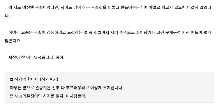 | ¶Ç ÀÚ±â ÀڽйÌÈÇϴ°ŠºÁ¿ä. "Àúµµ ¿¹Àü¿£ °üÁ¾ÀÌ¿´´Ù¸¸" ¾îÈÞ... Áö ¹ÚÁ¦µÇ´Â°Ç Áö¶öÇÏ´õ´Ï, ³² ¹ÚÁ¦ÇÏ´Â°Ç ±âºÐ ÁÁÀº°¡ºÁ¿ä. Àúµµ ¹Ì¶óŬ°¡·ç´Ù´ÔÀÌ ÀÌ·¸°Ô Çϴ°ŠºÎ²ô·¯¿ì¶ó°í ÀÌ·¸°Ô Á¶Ä¡Çϴ°̴ϴÙ. Á» ºÎ²ô·¯¿î ÁþÀ̸é ÇÏÁö ¸»ÀÚ. ¹Ì¶óŬ°¡·ç´Ù º´½Å»õ³¢¾ß. ÇÏ´Â Áþ ÇϳªÇϳª°¡ ¹Ì·¯ÀüÀ̾ß. |