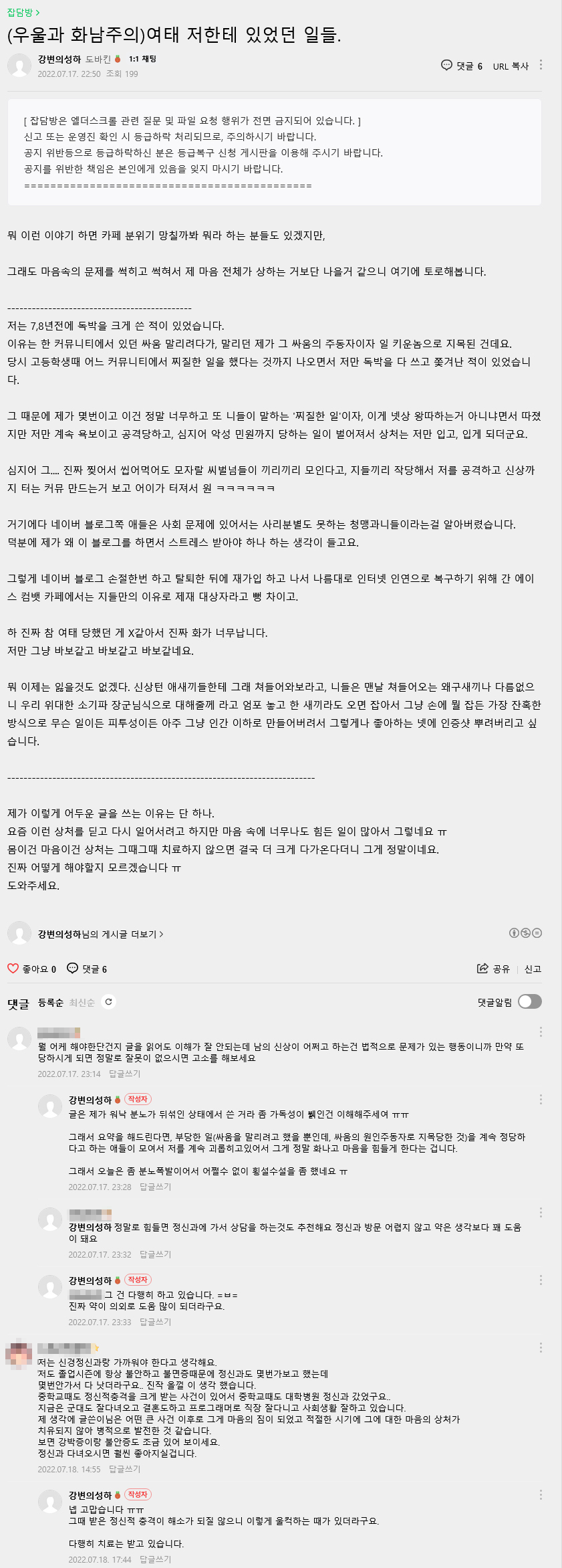 ÀÌÀ¯´Â ÇÑ Ä¿¹Â´ÏƼ¿¡¼ ÀÖ´ø ½Î¿ò ¸»¸®·Á´Ù°¡, ¸»¸®´ø Á¦°¡ ±× ½Î¿òÀÇ ÁÖµ¿ÀÚÀÌÀÚ ÀÏ Å°¿î³ðÀ¸·Î Áö¸ñµÈ °Çµ¥¿ä.