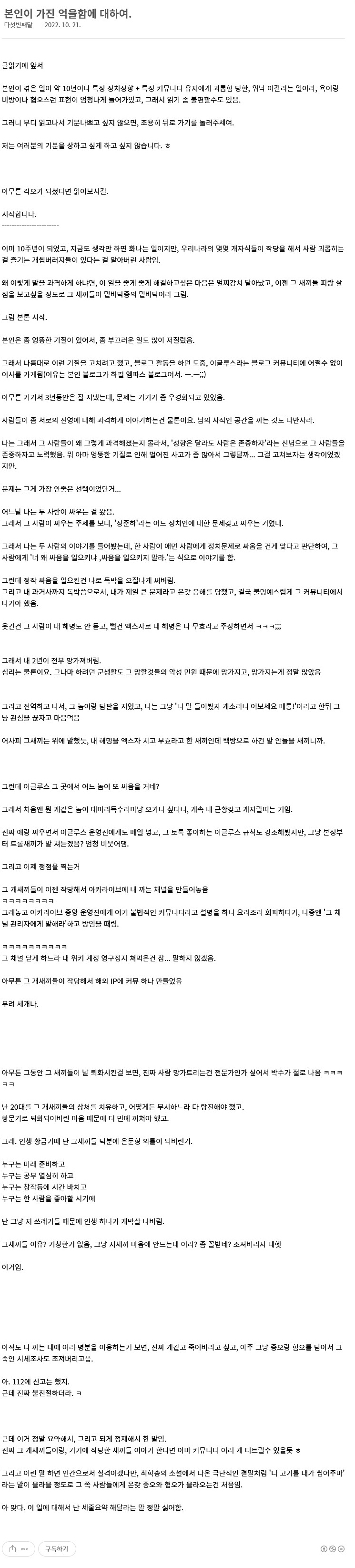 º»ÀÎÀÌ °ÞÀº ÀÏÀÌ ¾à 10³âÀ̳ª ƯÁ¤ Á¤Ä¡¼ºÇâ + ƯÁ¤ Ä¿¹Â´ÏƼ À¯Àú¿¡°Ô ±«·ÓÈû ´çÇÑ,