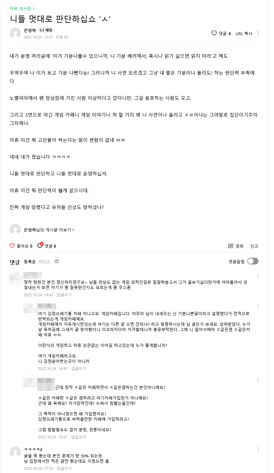 | ÃßÈÄ È®ÀÎÇϴϱî, Áö°¡ ¿å ó¸Ô´Â ±ÛÀ» Àڱ⠼ÕÀ¸·Î Áö¿î°ÇÁö ¹ºÁö ¸ð¸£°Ú´Âµ¥ Áö¿öÁö°í ¾ø³×¿ä. ¹ØÀÇ ³»¿ëÀº ÆùĸÃÄ·Î Àü´Þ ¹ÞÀº ³»¿ëÀ» ¿Ã¸³´Ï´Ù. ¾Ïư Áö ¾ï¿ïÇÏ´Ù°í È£¼ÒÇÏ´Â ±Û¿¡ ´Ùµé ¹¹¶ó°í Çϴϱî Áö¶öÁö¶öÇϰí ÀÖ½À´Ï´Ù. |