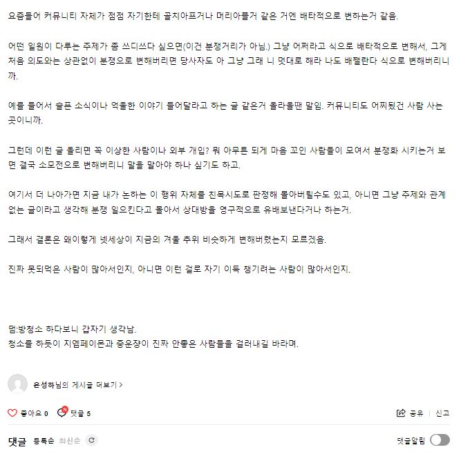 | ´À±×»õ³¢ »çÁ¤ ¾Ë¹Ù ¾Æ´Ï´Ù. ¿Ö ÃÄ ¿Ã¸®³Ä. Àú¹ø¿¡ ³ª¿Â À̾߱䵥, ³ª´Â ±×°Ô ¾ï¿ïÇÏ°í ¿Ã¸°°Å Á˰¡ ¾ø´Ù. ÀÌ »õ³¢ ÀÚ²Ù ±×µý ½ÄÀ¸·Î ±ÛÀ» Àû´Âµ¥, ³ªµµ 2023³â¿£ ´Ù¸¥ ¹æ¾ÈÀ» »ý°¢ÇغÁ¾ß°Ú´Ù ½Í¾îÁü. ¤·¤· |
