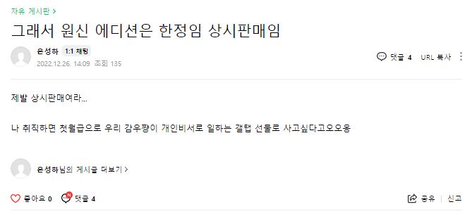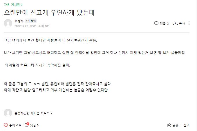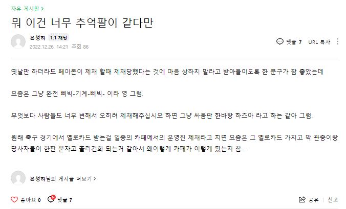 | 22³â 12¿ù 26ÀÏ ³¯ ³×À̹ö Ä«Æä¿¡ ½ÎÁö¸¥ ±Û°ú ´ñ±ÛÀ» ÇÑ ÆäÀÌÁö¿¡ ¸ðÀ¸±â·Î ÇÕ´Ï´Ù. Àú ³¯ ÆäÀÌÁö Çϳª¸¦ °¡µæ ä¿üÀ½. ´Ù µû·Î ¾´ °Íµµ ¾Æ´Ñµ¥µµ ºÒ±¸Çϰí ÇÑ ÆäÀÌÁö °¡µæ |