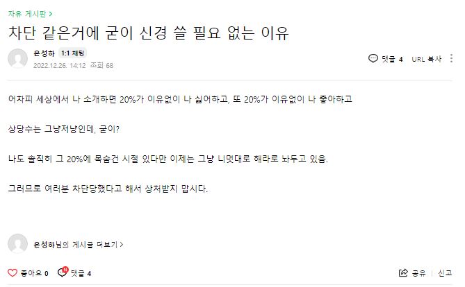 | Áö·Ú°¡ ¾î¼±¸ Àú¼±¸ ÇÏ´Â ±Û¿¡ ´Þ¸° ÄÚ¸àÆ®´Ù. Àú´Â ¸»ÀÌ¿¡¿ä. ÀڱⰡ ÀÌ ¿©Ä³¸¦ °¡Áú ¼ö ¾ø´Ù°í ¿©ÀÚ µÎ ¸íÀ̼ ¼·Î »ç¶û ³ª´©´Â °Å¿¡ ±×°Ô ½È´Ù°í ÂôÂô°Å¸®´Â Âðµû»õ³¢°¡ Àú¿¡°Õ Áö·Ú¿¡¿ä. °Íº¸´Ù 'Àº¼ºÇÏ'¾¾°¡ '¹«·Ê'¸¦ ³íÇϳ׿ä. "³ Àú ´¤ ½ÈÀ½" "XX´¤ ½ÈÀ½" ÀÌ ÆÐ½ÃºêÀÎ »õ³¢°¡ ¹«·Ê¸¦ ³íÇØ? ±Û ´Ù¸¥ ³»¿ë º¸´Ù '¹«·Ê'¸¦ ³íÇÏ´Â°Ô Á¸³ª ¿ô±äµ¥¿ä? |