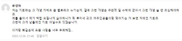 | À½. 'Àº¼ºÇÏ'´ÔÀÌ ÇÏ½Ç ¸»¾¸Àº ¾Æ´ÏÁö ¾Ê³ª¿ä? Àúµµ Àú ¼±µ¿¼º °Ô½Ã¹° ½Å°í µÈ°Å Á» ÀоîºÃ½À´Ï´Ù. ±Ùµ¥ 'Àº¼ºÇÏ'´ÔÀÌ ¾´°Ç Çϼҿ¬ÀÌ°í ±× »ç¶÷ÀÌ ¾´°Ç »¹±ÛÀԴϱî? ÁøÂ¥ ´Ô ³²¿¡°Ô °¨Á¤ÀÌÀÔÀº ÀüÇô ¾ÈÇϽô±º¿ä. ´Ù¸¥ ±Û¿¡¼ ´Ù½Ã ÀûÀ»ÅÙµ¥, ³²ÀÇ Á×À½¿¡ ½½Ç ô Çϸç Çö Á¤±Ç ±ñ´Ù°í ³»°¡ Á¸³ª ¹¹¶ó ÇßÀݾƿä. ¿©±â¼ ´À²¸Á®¿ä. ³²ÀÇ À̾߱⿡ ´ëÇØ¼´Â '»¹±Û Ãë±Þ' Çϴ°Å. ¿Ö ´Ï°¡ ÇÏ´Â ¼Ò¸° Çϼҿ¬À̰í, ³²ÀÌ ÇÏ´Â ¸»Àº »¹±ÛÀÌÁÒ? |