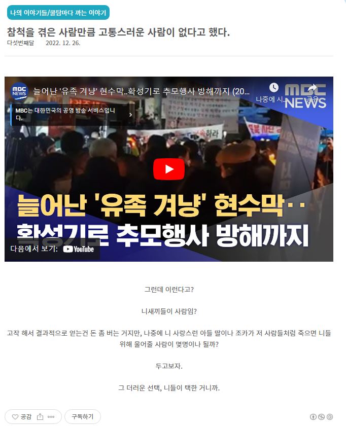 | ´Ù¸¥ ¹«¾ù º¸´Ù '´Ù¼¸¹øÂ°´Þ' ¾Æ´Ï ÇÑÁ¾¿ì°¡ Àú·± ¼Ò¸® ¾²°í ÀÖ´Ù´Â°Ô Á¤¸» °³ ¿ª°ã´Ù. ´Ù¸¥ »ç¶÷ÀÇ ±Û¿¡´Â °¨Á¤ Çϳª Àç´ë·Î ´À³¢Áöµµ ¸øÇϰí '»¹±Û' Ãë±Þ ÇÏ´Â ºÐÀÌ, °ú¿¬ ³²ÀÇ ½½ÇÄÀ» ´À³¢°í °°ÀÌ °¨Á¤À» °øÀ¯ÇÒ±î? ±×Àú ÀÌ »õ³¢´Â Çö Á¤±ÇÀÌ ¸¶À½ÀÌ ¾È µå´Ï±î ±×°É ±î±â À§Çؼ. ÀڱⰡ ½È¾îÇÏ´Â º¸¼ö ´Üü°¡ Àú·¯´Ï±î ±×°Ô ½ÈÀ¸´Ï±î ±×·±°Å´Ù. ÀÌ »õ³¢´Â ´©±º°¡ÀÇ ½½ÇÄÀ̳ª Á×À½¿¡ ´ëÇØ 'ž½Â'À» ÇÒ »ÓÀÌÁö. ½½ÇÄÀ» °øÀ¯ÇÏ°í °°ÀÌ ½½ÇÄÀ» ³ª´©Áø ¾Ê´Â´Ù. ±×·¯¸é¼ ÀÚ½ÅÀÇ ½½ÇÄ¿¡ ´ëÇØ¼´Â ¾Æ¹«µ¥³ª °¨Á¤ ¾²·¹±âÅëÀ¸·Î ¸¸µé°í ½ÎÁö¸¦ »Ó. |
