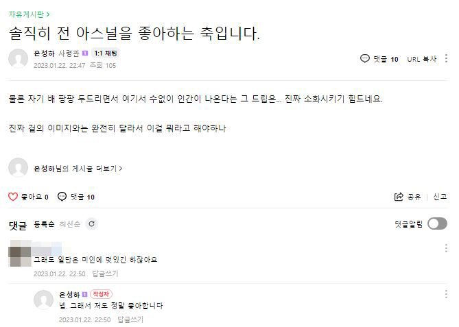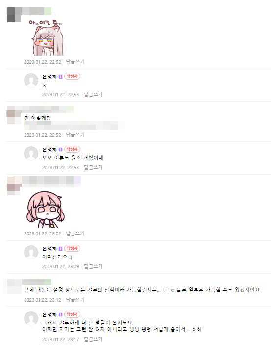 | À½... Àú¶ó¸é ±× ¿©¼ºÄ³¸¯ÅͰ¡ ´Ô °°Àº »õ³¢°¡ ¸¶Áö¸· ³²Àº »õ³¢¸é ±×³É ´Ù µÚÁöÀÚ°í ÇÒ °Í °°½À´Ï´Ù. "¾Æ¹«¸® ±×·¡µµ Àº¼ºÇÏ(ÇÑÁ¾°¡/ÇÑÁ¾ºÏ)¿¡°Ô´Â ¾È ¹ÚÀ» °Å¿¡¿ä" |