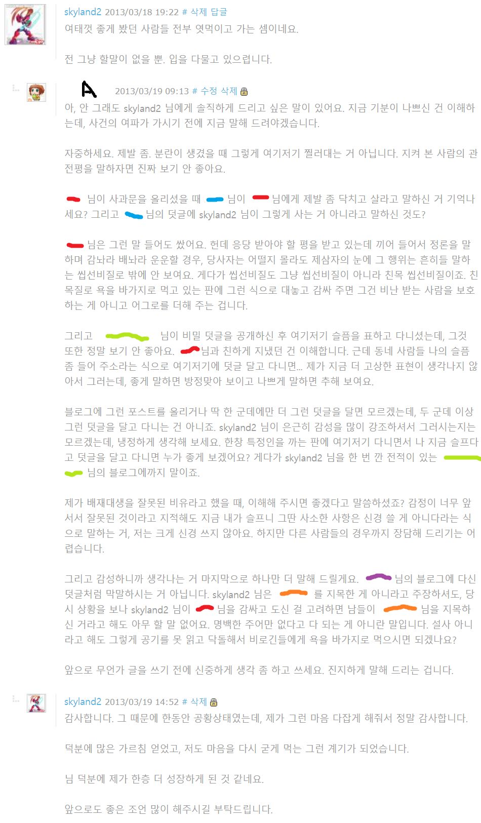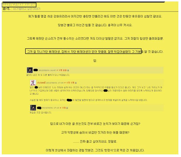 ¾î´À³¯ ¶õµµ´Â ³ÝÁöÀÎÀÌ ³×ÀÓµå À¯Àú¿Í ´ëÆÇ ½Î¿ì´Â ±¤°æÀ» ¸ñ°ÝÇÏ°Ô µÊ. (±×½Î¿òÀº Ç®¾î¾²¸é ³Ê¹« º¹ÀâÇØ¼ ÀÚ¼¼ÇÑ ¼³¸íÀº »ý·«ÇÔ. ¾îÂ÷ÇÇ ÀÌ °Ç¿¡ ÀÖ¾î¼ º°·Î Áß¿äÇÑ °Íµµ ¾Æ´Ô.) Æò¼Òó·³ Ű¹è°¡ ³Ê¹« ÁÁ¾Ò´ø ¶õµµ´Â ³ÝÁöÀÎÀ» ÀÀ¿øÇϸç, Æ®·ÑÀº È®½ÇÇÏ°Ô ¸ÅÀåÇØ¹ö¸®¶ó´Â »ì¹úÇÏ°íµµ À½ÇèÇÑ Á¶¾ðÀ» °Ç³×¸ç ÀÀ¿øÇÔ. °Ô´Ù°¡ º¸½Ã´Ù½ÃÇÇ ÀÏ»ó ¹ë¸®(°ø°³ °Ô½ÃÆÇÀ̶ó°í »ý°¢ÇÏ¸é µÊ)¿¡ ¹ßÇàÇÏ´Â ÀÌÇØÇÒ¼ö ¾ø´Â ÁþÀ» ÀúÁö¸§. ±×·±µ¥ ¾ÆÂ÷. ±× ³ÝÁöÀÎÀÌ »ðÁúÀ» Çߴµ¥, ±×»ç¶÷Àº Çѹø »ðÁúÇÏ¸é ¸àÅ»ÀÌ Á» Å©°Ô ÅÍÁö´Â »ç¶÷À̾úÀ½. °Ô´Ù°¡ ±× »ðÁúÀÌ Á» ½É°¢ÇßÀ½. »ðÁú°ú ¿ªÇ³À» ¼ö½ÀÇÏ´ø ¶õµµÀÇ ÁöÀÎÀº »ðÁúÀ» °è¼ÓÇß°í, ÀÏÀÌ ÅÍÁö¸é¼ »ó´ç¼öÀÇ ÁöÀεéÀÌ ¿«ÀÌ´Â ¹Ù¶÷¿¡ °á±¹ ¸àÅ»ÀÌ ¹Ù´Ú³ª¼ ÀÚÆøÇÔ. ÀÌ·¸°Ô µÇ´Ï±î ¶õµµ´Â ±²ÀåÈ÷ °ï¶õÇØÁ³À½. °ø°³ÀûÀ¸·Î ¸ÅÀåÇ϶ó¸ç ÀÀ¿øÇÑ ÂÊÀÌ ºÎµµ³µÀ¸´Ï±î. ±×·¡¼ ¶õµµ°¡ ÃëÇÑ Á¶Ä¡´Â ¹Ù·Î ¶õµµ´Â ±× ÁÖÁ¢À» ³ÝÁöÀÎ AÀÇ ºí·Î±×¿¡¼±îÁö ¶³¾ú°í, °á±¹ A´Â ÀÌ°Ç ¾Æ´Ï´Ù ½Í¾ú´ÂÁö ¶õµµ¿¡°Ô Àå¹®ÀÇ ÅÂŬÀ» ³¯¸². (´Ð³×ÀÓÀº Å« »ó°üÀÌ ¾ø¾î¼ ÀüºÎ »ö»óÀ¸·Î ó¸®ÇÔ.) º¸½Ã´Ù½ÃÇÇ ¶õµµ´Â Àú´ç½Ã¿¡´Â ¾Ë¾Ò´Ù¸é¼ ¸éÀü¿¡¼´Â AÀÇ Á¶¾ðÀ» ¹Þ¾Æµé¿´À½. ¿ä¾à 1. ¶õµµ´Â »ç°ÇÀÌ ÅÍÁö±â ÀüºÎÅÍ º´½ÅÀ¸·Î À̸§À» ¾Ë¸®°í ÀÖ¾ú´Ù |