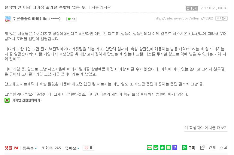 ![]() ¿ä¾à: ¾Æ °¡Ã ÇÒ µ·Àº ¾ø´Ù°í~ ³ª °°Àº ¹«/¼Ò°ú±Ý À¯Àú´Â ¾î¼¶ó°í~ º¹±Íº¸»ó ÁÖ¸é µ¹¾Æ¿Ã ¼öµµ ÀÖ´Ù°í~ ¾Æ ¾î¼¶ó°í~ ÀÚº»ÁÖÀÇ »çȸ¿¡¼ ¸ð¹ÙÀÏ °ÔÀÓÀÌ ¾î¶»°Ô µ¹¾Æ°¡´ÂÁö ¸ð¸£³Ä°í~ ²¿¿ì¸é ±×³É Á¢À¸¶ó... ¾ÆÂü ¶õµµ´Â °ö°Ô ¸ø Á¢Áö Âü ¤»¤»¤» ¸ð¹ÙÀÏ °ÔÀÓ µ¹¸®¸é ²À Àú·± ½ÄÀ¸·Î À¯Àú¿Í °ÔÀÓ¿¡´Â ¾ÏÀ̳ª ´Ù¸§¾ø´Â ¡¡À̵éÀÌ ³ª¿À´Âµ¥, ±×·± ¡¡À̵é°í ±×·¸Áö¸¸ À÷´Â ÁøÂ¥ ²Ãº¸±â ½È¾î¿ä ¤»¤»¤» º¹±Íº¸»ó ¤»¤»¤» ¼ÖÁ÷È÷ ¶õµµ°¡ Ä«Æä¸¦ Àý¹Ý¸¸ ´Ù´Ï°í ±× µ·À» °ÔÀÓ¿¡¸¸ ½è´Ù¸é Àú·± ¡¡ÁúÀº Çϳªµµ ¾ÈÇØµµ µÆÀ½ ¤©¤· ¤»¤»¤»¤»¤»¤» |